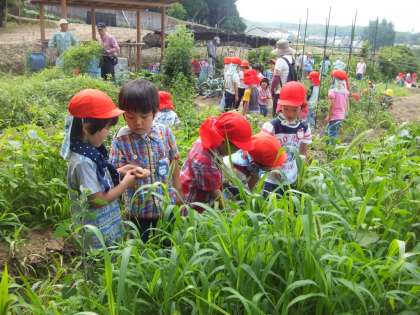 バッタをとったり,カマキリを探したり,虫との出会いも楽しんでいました。