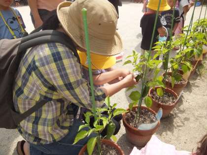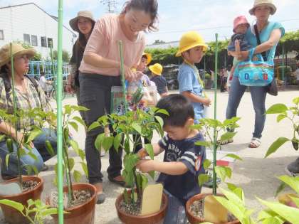 毎日親子で水やりをしていたおかげで,ピーマンがずいぶん大きくなりました。