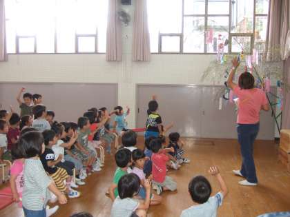 『たなばたさま』の歌を歌ったり,園長先生から七夕のお話を聞いたり,絵本を見たりして楽しみました。