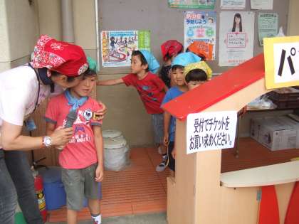 と呼び込みをし,お客様からチケットをもらうと担当のお母さんに渡します。