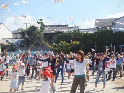 まずは,プログラム1番の体操で,親子で元気いっぱい体を動かしました!