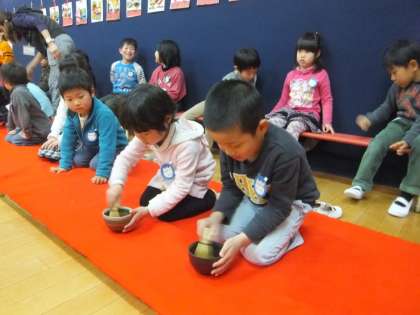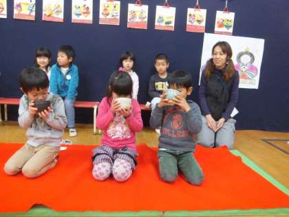 年長組は,お茶をいただいた後,お茶立て体験もさせていただきました。