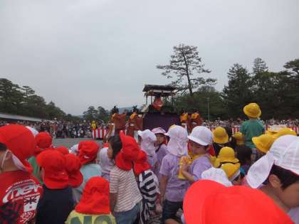 日本の伝統文化に触れる見学となりました。「昔の刀を持ってはった」「お姫様ってきれい!」「鹿の毛皮もあった」「傘が大きいな」など行列を見ながらいろいろなことを思っていました。