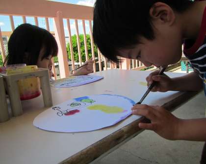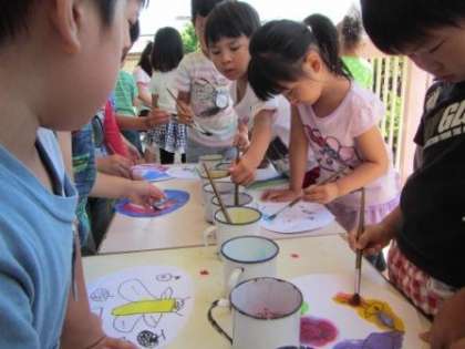 最初は友達とお話しながら楽しくかいていた子どもたちですが,色をつけるころになると自分の絵に黙々と向かい取り組む姿が見られました。