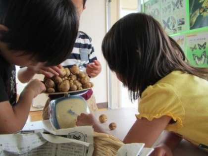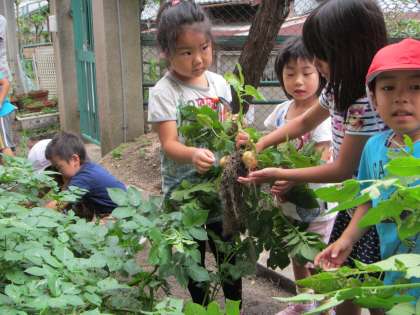 幼稚園の畑のじゃがいもが,収穫時期になりました。