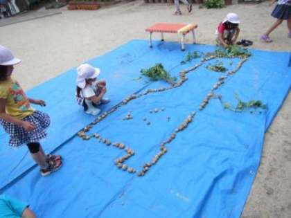 そして,掘れたいもを園庭に並べていくうちに・・・