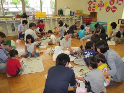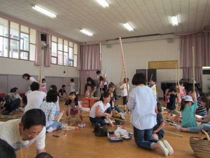 今日は子どもたちが楽しみにしていた土曜参観でした。5歳児は竹馬,4歳児は一本歯下駄をつくりました。お家の人につくってもらう世界にひとつのおもちゃです。またどちらのおもちゃもバランス感覚を促し,また,「難しくても頑張ろう」という思いにもつながると思っています。できあがると,お家の人に支えてもらいながら,挑戦しようとする姿があちこちで見られました。少し歩けると,「すごい!」とお家の人や周りの保護者の方にも認めてもらうことも嬉しく励みになったようです。でも何より嬉しかったのは,自分のためにお家の人が一生懸命つくってくれたことかな・・・。幼稚園でも大事に遊びたいと思います。ありがとうございました。