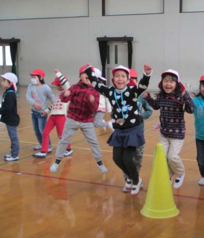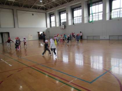 続いて,幼小合同班対抗ドンジャンケンを楽しみました。年長組の子どもたちは,小学生のジャンケンのスピードに必死でついていこうとしている姿も愛らしく・・・。
