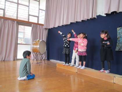 誰かが太鼓を鳴らすと,それを聞きつけた数人がやってきて『じごくのそうべえ』ごっこが始まりました。