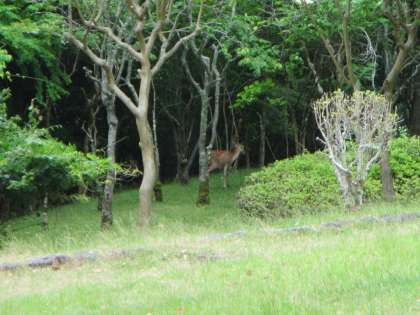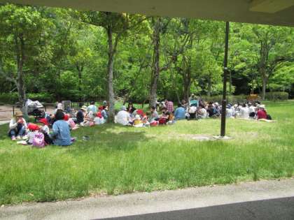 お昼は,緑いっぱいの自然の中でみんなで食べました。いろいろな親子の楽しい会話に,思わぬ訪問者『シカ』登場のサプライズもありました!