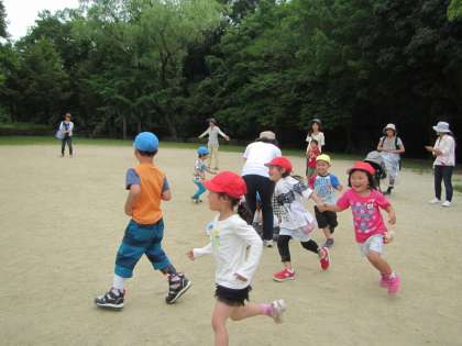 まずは,年少組対決。『みんなで走ることが楽しい!』『取れたら「やったー!」』の姿がとても微笑ましかったです。