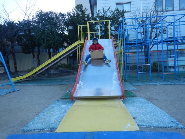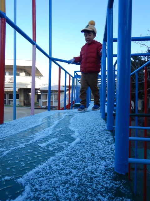 うっすら積もった雪の上をそぉっと歩くと・・・