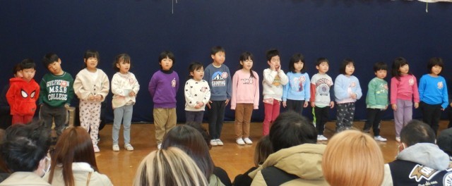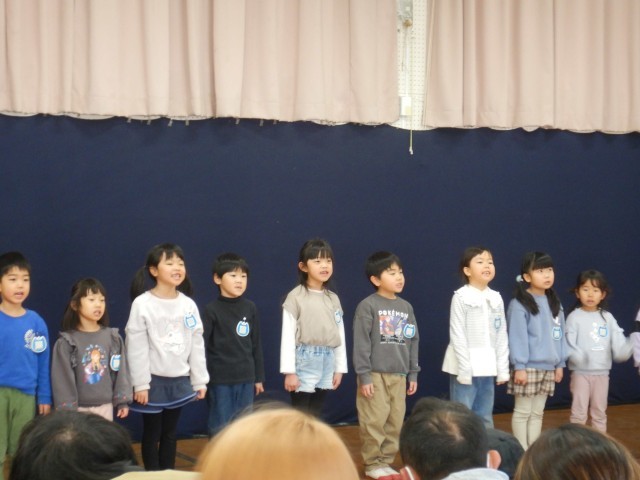 プログラム4番 4歳児が『つぼみ』『あ・い・う・え・おにぎり』を歌いました。それぞれ曲調に合わせて、愛らしい優しい歌声と元気な歌声にたくさんの拍手をいただきました。
