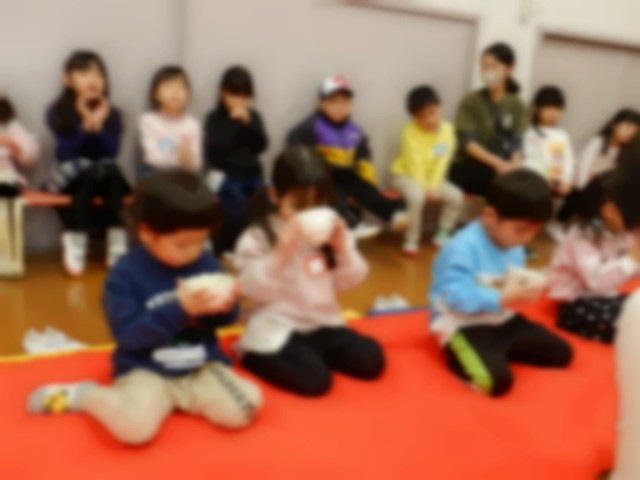 そら組はにじ組の様子を見て自分たちの番を待っていました。丁寧にお辞儀をしたり、「にじ組のときには飲めなかったのに飲めるようになった!」と自分の成長を感じたりしている姿がありました。