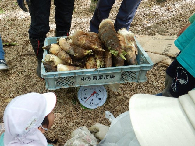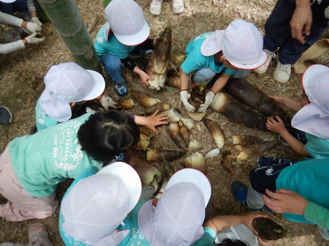 5歳児は、地域の竹林に出かけて、
