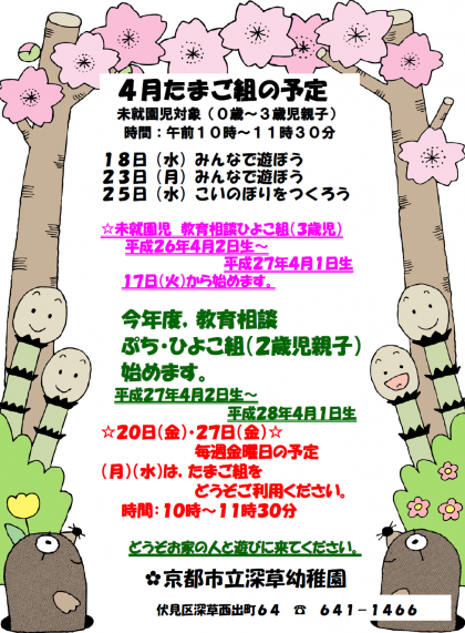 平成30年度 未就園児 教育相談4月予定