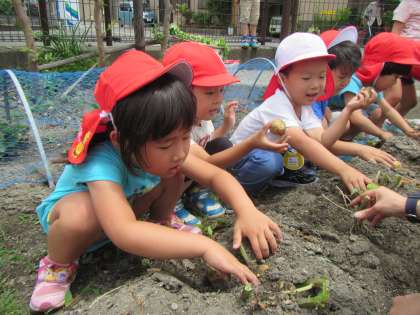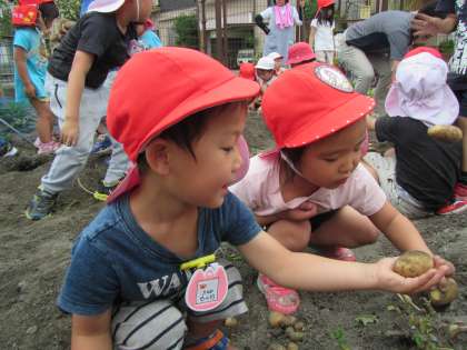 一生懸命,手で掘って,「大きいの出てきた!」「いっぱいつながってるよ」「赤ちゃんみたいなおイモもある」と,とても喜んでいました。