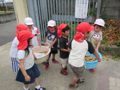 今日は,全園児みんなでてんとうむしひろばでジャガイモを収穫しました。