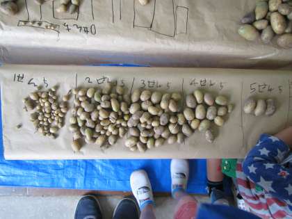 “センチ”という単位を使って,大きさの違いに気づいたり,じゃがいも同士を比べたりしていました。