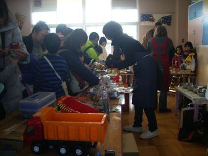 さて,この時期が近づくと幼稚園に地域の人たちから「今年のバザーは,いつですか」とお問い合わせが何件もあり,大人気のバザーです。