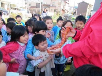 15日(土)は一日動物園でした。一番盛り上がったのは,ヘビです!!ヘビが登場すると・・・ちょっと怖いけど触ってみたい!!と,ドキドキしながら触る子ども達の表情がとってもかわいかったです。動物との触れ合いのひと時,とても楽しかったです。