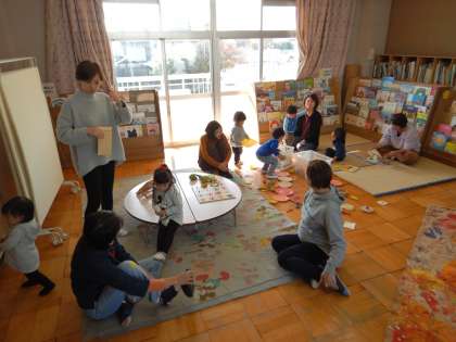 また,子どもたちは,おもちゃの乗り物やままごとや積み木など,自分の好きな遊びを楽しんでいました。お母さんに絵本も読んでもらったね。