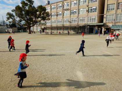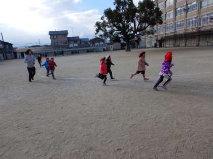 1月21日(火),マラソン大会を行いました。12月から,てんとうむしひろばや小学校の運動場で,この日に向けて走ってきました。
