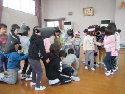 年少児や年中児にとっては,“憧れていたことが一緒にできること”が嬉しく,年長児にとっては,“自分たちのつくった劇を楽しんでもらったり,教えてあげたりすること”が嬉しいひと時になりました。