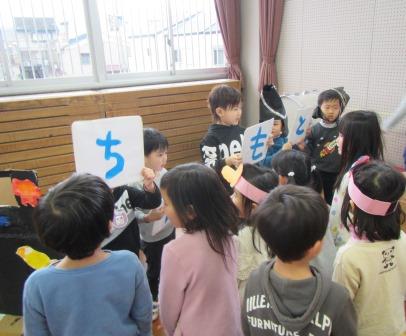楽器遊びの後は,すみれ組の劇で遊びました。