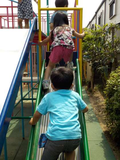 そのあと,何回も登っては,滑り台をすべって遊びました。