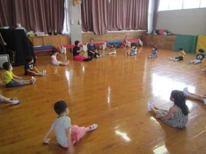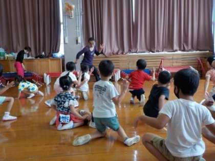 伝統文化や様々な文化に触れるという趣旨の教育委員会の取組で,今日は幼稚園に洋舞(ダンス)の講師の先生に来ていただき,4歳児・5歳児の子どもたちが各クラス別で,講師の先生と一緒に身体を動かしてダンスを楽しみました。
