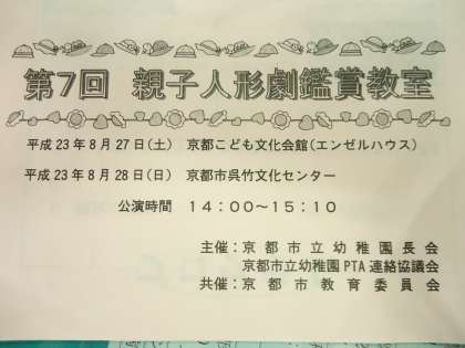 昨日は第7回親子人形劇鑑賞教室が開催されました。人形劇団京芸の方たちによる人形劇「火よう日のごちそうはひきがえる」を見ました。