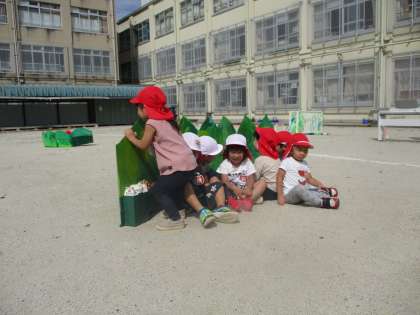 また,親子で大好きな『キャベツはキャッ』を踊りました。おうちの人に追いかけられたり,こちょこちょされたりしながら,たくさん触れ合うことができ,とても楽しい一日となりました。
