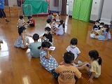 今日は、そのはじめとして、年長組と年中組で遊びました。年長組の子どもたちが、同じ家族の年中組の友達を誘いに来てくれて、仲良し遊びをしたり、名前を言い合ったりしました。少し恥ずかしそうにしていた子どもも、仲良し遊びのダンスをする頃には、楽しんでいる姿がみられました。