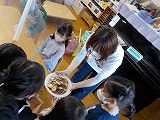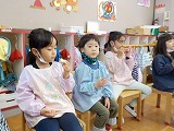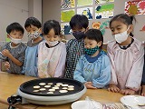 子ども達が、輪切りにしたさつまいもをホットプレートに乗せ、ふたを閉めると…「おいしくな〜れ」の大合唱!たんぽぽ組のおまじないも効いて、とっても、おいしいさつまいもができました。「どんな味かな?」と、たんぽぽ組だけで、試食すると…「おいしい!」とみんな嬉しそうに食べていました。