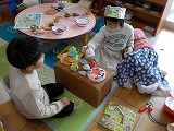 『おりがみにんじゃ』という絵本をクラスで楽しむと、いつもの忍者に加えて、お話に登場してくるあずき城のあずき姫になったり、折り紙を楽しんだり、お話の世界を楽しむ姿が見られました。
