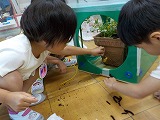 昨日は、「気持ち悪い〜!」と言っていた子どもたちも、だんだん幼虫がかわいくなってきた様子で、幼虫に名前をつけて、お家に入れてあげていました。