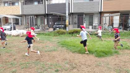 そのあとは、みんなでかけっこをして、体を動かしています。