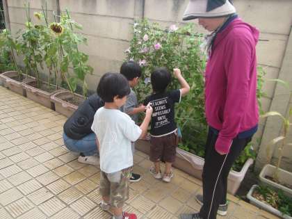 朝顔、オシロイバナ、ひまわり…幼稚園に咲いている花で試してみました。