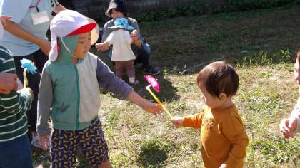 風車をもらったお友達はとてもうれしそうで、さっそく、走って風車を回していました。