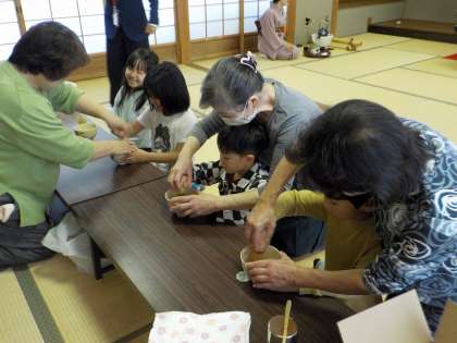 そして、お茶を点てたり、お運びをしたり、お菓子やお茶を頂いたり、一つ一つ丁寧に教えて頂きながら、経験することができました。子どもたちの感想は、「お菓子は甘かったけど、お茶は苦かった」そうです。