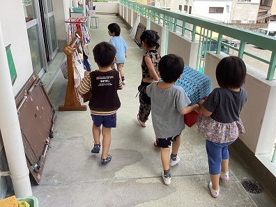 二学期から、今、生活している保育室から変わるので、自分たちが使っていたものを、新しく保育室になるお部屋に引っ越しするのです。