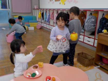 遊ぶの大好き!(ちゅうりっぷ組) 公開日 2025/04/14 更新日 2025/04/14 幼稚園では・・・ 幼稚園で遊ぶことを楽しみにして,登園してきたちゅうりっぷ組の子どもたち。園庭でブランコや砂場で遊んだり,保育室でままごとや積み木を使って遊んだりして楽しそうに遊んでいました。片付けの時間になると「え?まだ遊びたい!」「お弁当食べないの?」ともっと幼稚園で遊びたかった様子でした。また明日もいっぱい遊ぼうね!