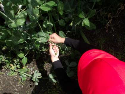 今日は、たんぽぽ組とすみれ組で“てんとうむしひろば”で栽培しているスナップエンドウを収穫しました。進級する前に育て始めた豆が立派に育ち、「いっぱいあるなあ」「あかちゃんのお豆もある!」などと言いながら、収穫を楽しみました。たくさん収穫できたので、すみれ組のお友達が数えてみてくれたところ、なんと…262個もあったようです!!!