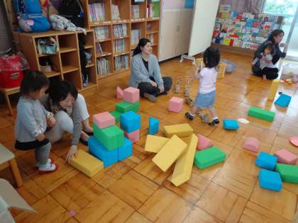 めだか・うさぎ組 公開日 2016/05/11 更新日 2016/05/11 めだか・うさぎ組 5月11日(水),天候が雨のためか参加が少なくさびしい感じ。今日のめだか・うさぎ組は,絵本室で自分の好きなおもちゃや積み木で遊びました。雨が止んだ合間に,「外で遊びたい」と言っていたお子たちも。今週は雨が続いているので,外で遊びたいね。