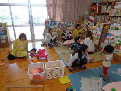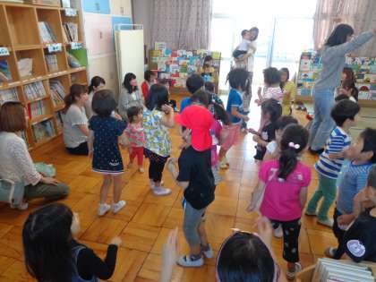 【5月18日】めだか・うさぎ組 公開日 2016/05/18 更新日 2016/05/18 めだか・うさぎ組 今日のめだか・うさぎ組は,絵本室でおもちゃや絵本などを読んで過ごしました。新しいお友だちも増えて,なかよく自分の好きな遊びをしていました。 すみれ組の子どもたちが,エビカニクスのダンスをして,みんなでいっしょに遊びました。