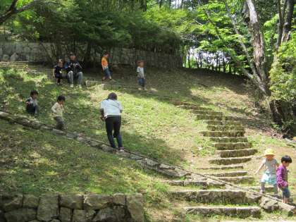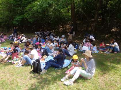 親子遠足で宝が池に行きました。ポイントにいる先生のお題に挑戦しながら,お家の人と一緒に池の周りを歩きました。階段を登ったり,クイズに答えたり,宝探しをしたり,鯉にえさをあげたりしながら約30分程歩いた後,みんなで美味しくお弁当を食べました。いっぱい歩いたので子どもたちは疲れたと思いますが,お家の方や友だちと楽しい時間を過ごしたり,色んな自然にも触れ合えたりできたと思います。今日は,お家に帰ったら,お家の人に遠足のお話をして,ゆっくり休んでねっ!