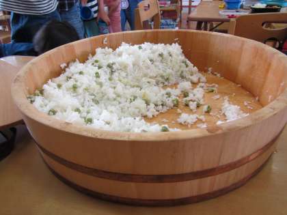 その豆を使って,今日は豆ご飯をつくってもらいました。