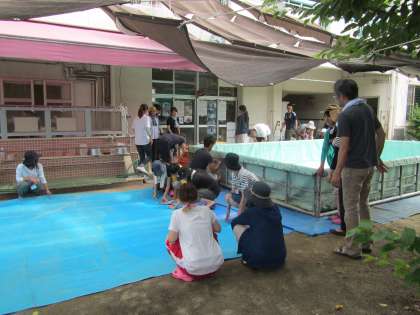園庭にプールができたよ! 公開日 2016/06/15 更新日 2016/06/15 幼稚園では・・・ 今日はプールの組み立ての日でした。 暑い中,たくさんの保護者の方々が組み立てを手伝ってくださいました。本当にありがとうございました。出来上がったプールを見て,明日からのプール遊びをとても楽しみにしている子どもたちです。