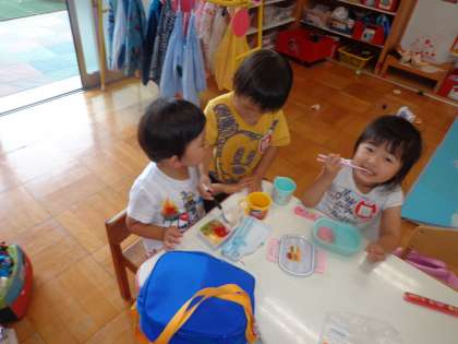 ちゅうりっぷ組 最近のお弁当の時間! 公開日 2016/06/16 更新日 2016/06/16 幼稚園では・・・ お弁当の時間が大好きなちゅうりっぷ組の子どもたち,「お弁当食べる準備するからお片付けしようね!」と言うとはりきって片付け始めます。また,「今日はお弁当ないの〜?」と毎日聞いてくる子どももいます。だんだんとお弁当を幼稚園で食べることにも慣れ,友達を手伝ってあげている子どもの姿も見られるようになりました。「美味しい〜!」と笑顔で言っている子どもの様子をお家の人にも見せてあげたいです。